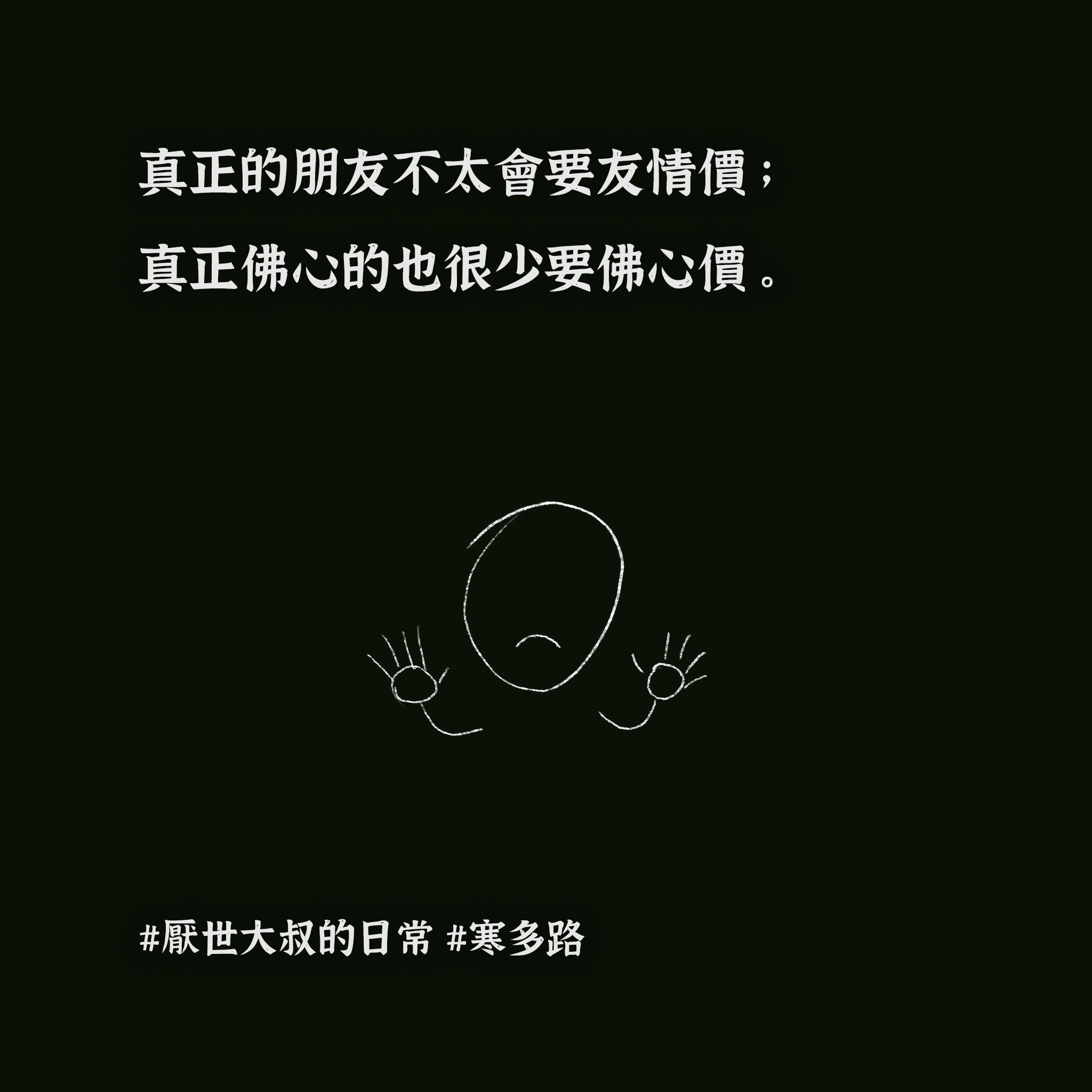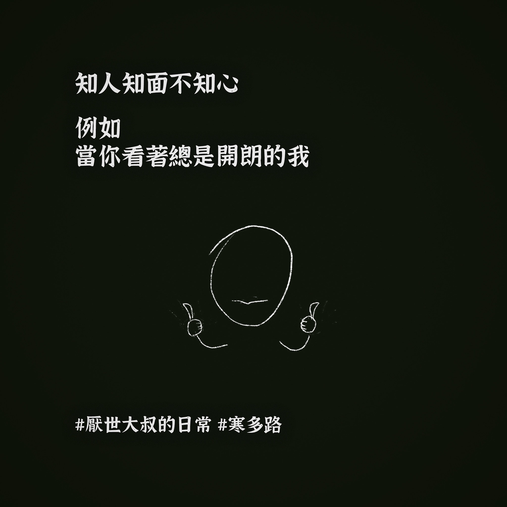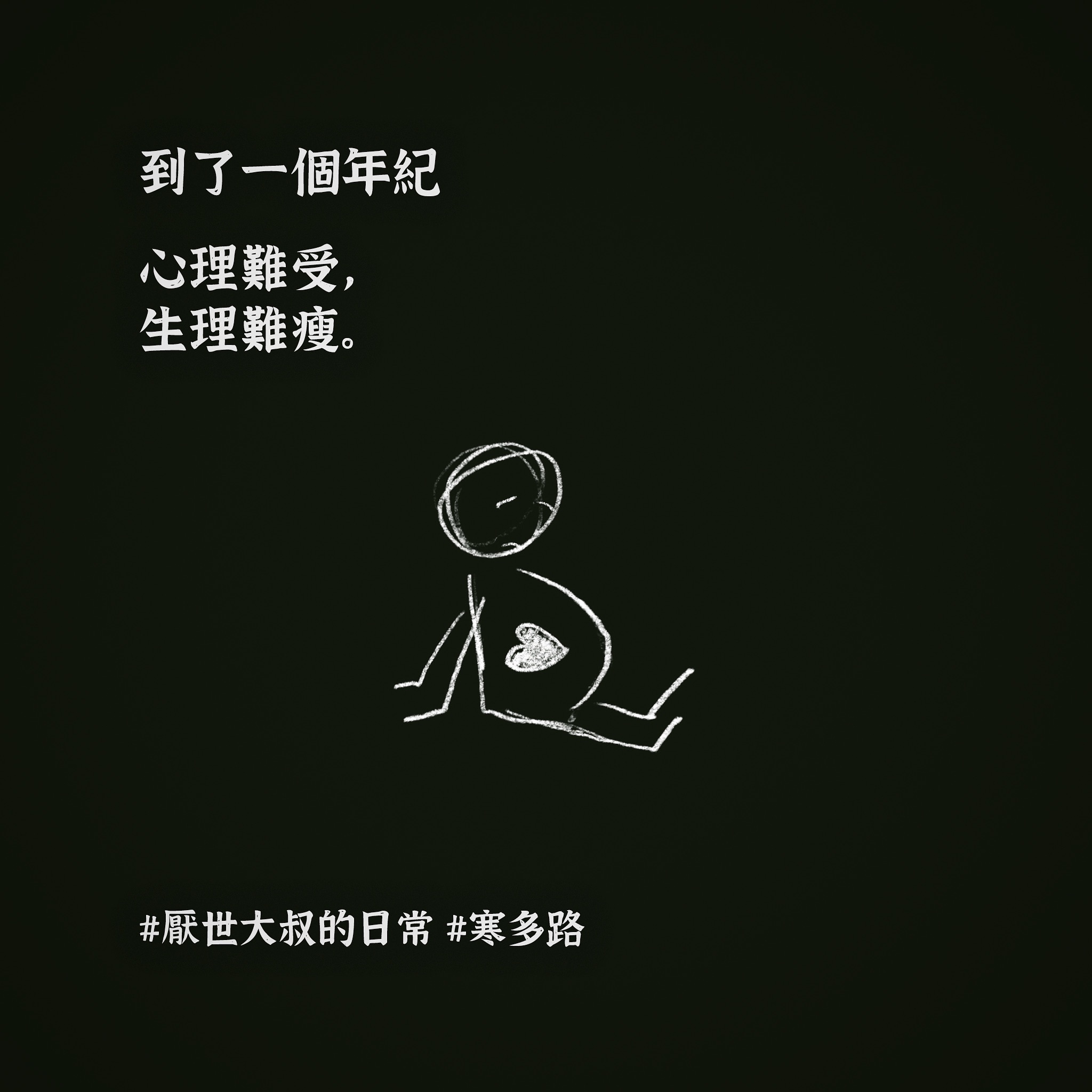 有的人以為你不喜歡他,所以他決定先不喜歡你。但你並沒有不喜歡他,就不知為何被他不喜歡了。所以得三不五時讓他知道你沒有不喜歡他。這件事真的好累。#厭世大叔的日常 #寒多路