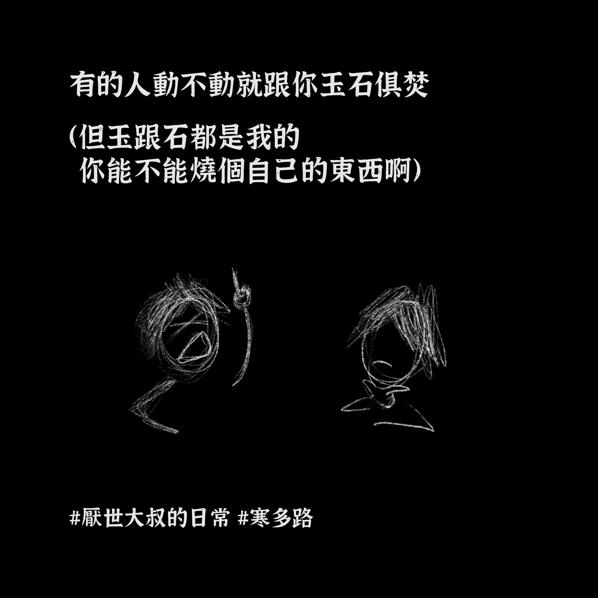 拿我的玉石來俱焚,還嗆我嗆得這麼帥氣,我也是頗尬。#厭世大叔的日常 #寒多路