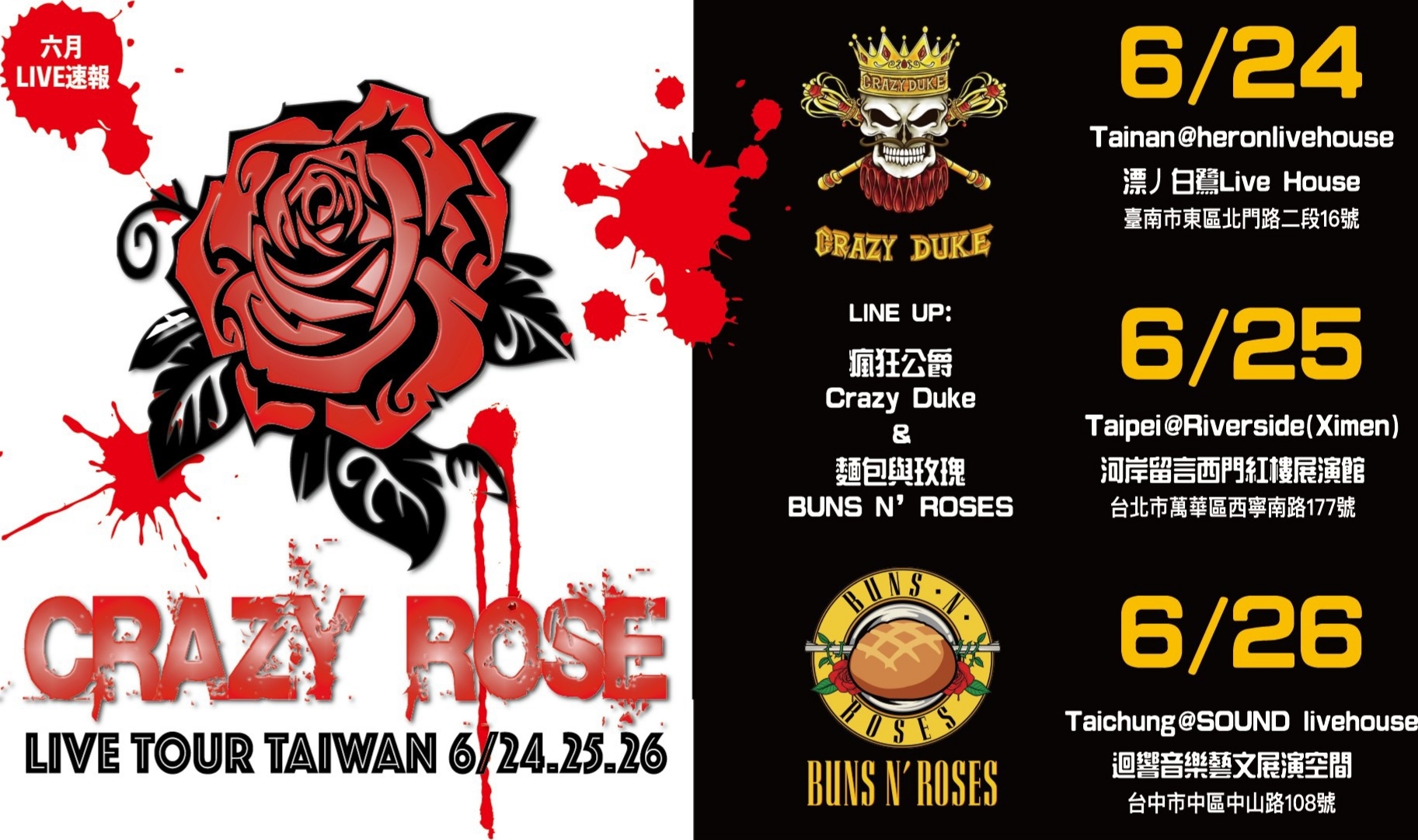 瘋狂玫瑰:公爵吃麵包 2022 Tour 北中南巡迴!
