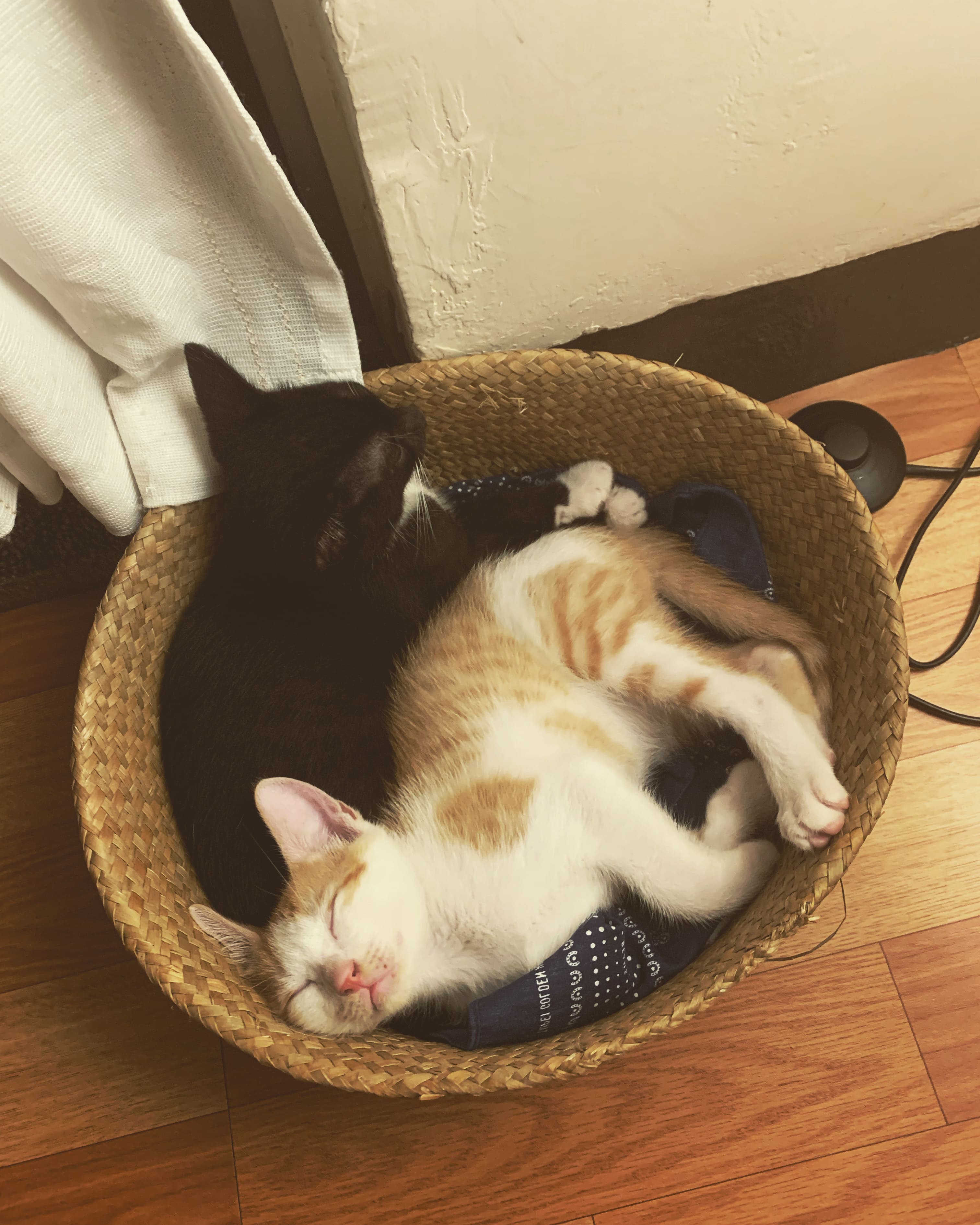 這首歌是和來自韓國的貝斯演奏家 @Sujong Park 朴秀鐘 一起合作完成的,從去年我的返祖現象專場我們就一直密切合作,有一天我跟他說「我們來寫一首關於我的貓咪的歌吧!」並傳給他一個整首歌只有貝斯和鼓(我自己在工作室錄的)兩個樂器,而且貝斯只有re跟la兩個音的demo。