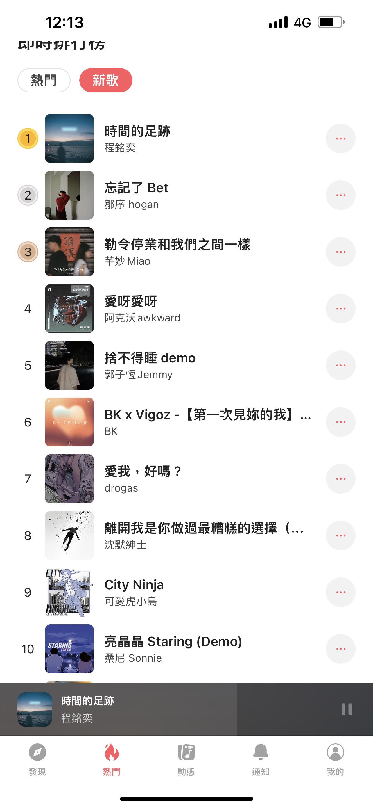 我的新歌「時間的足跡」在今天晚上得到了熱門榜排行第一名