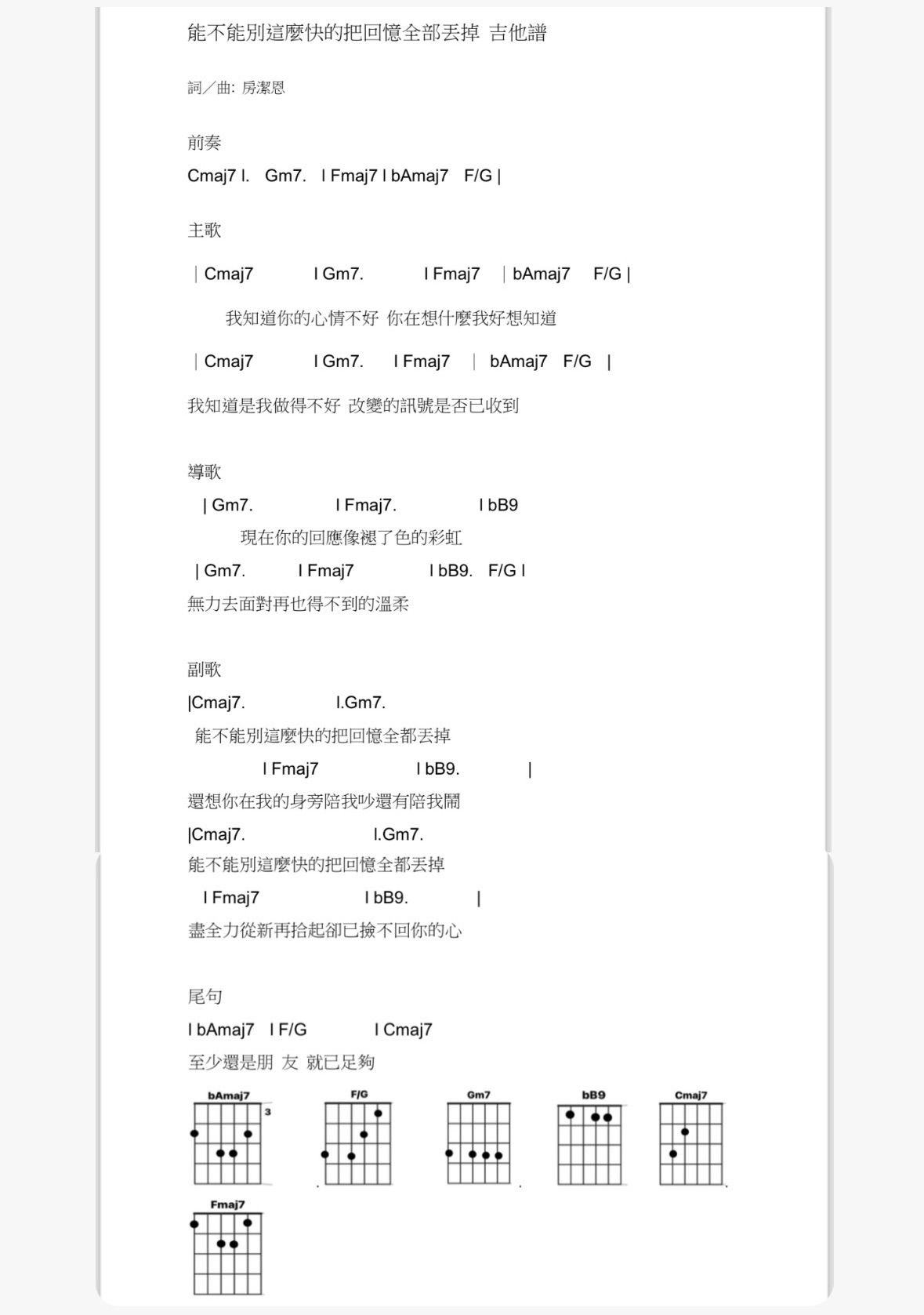 能不能別這麼快的把回憶全部丟掉的吉他譜