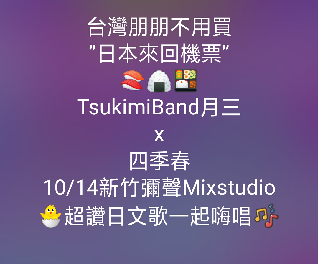 🔜緊急演出動態!1014 TsukimiBand月三x日文樂團 live in新竹:日本來回機票/流量解碼!