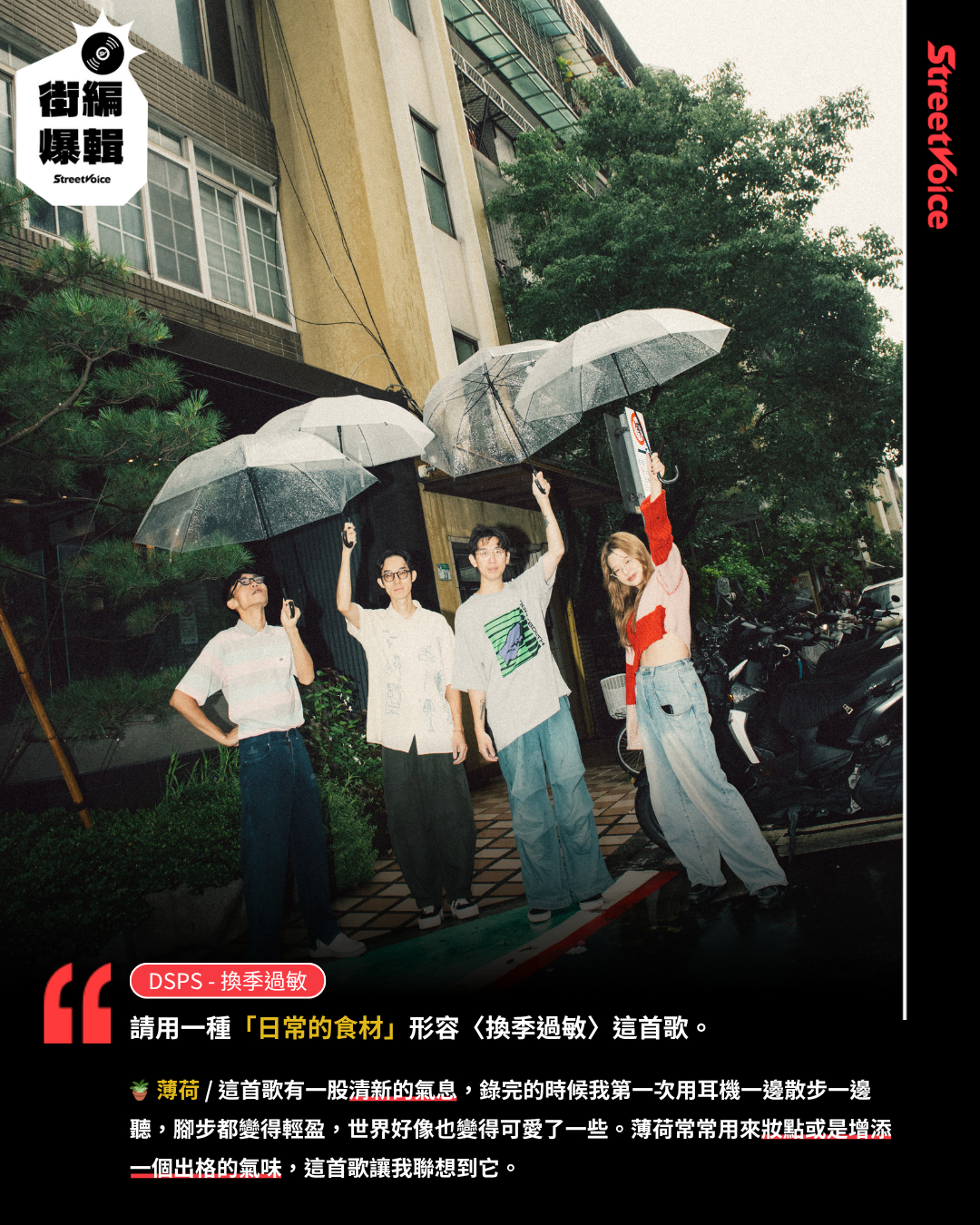 Q:請用一種「日常的食材」形容〈換季過敏〉這首歌。