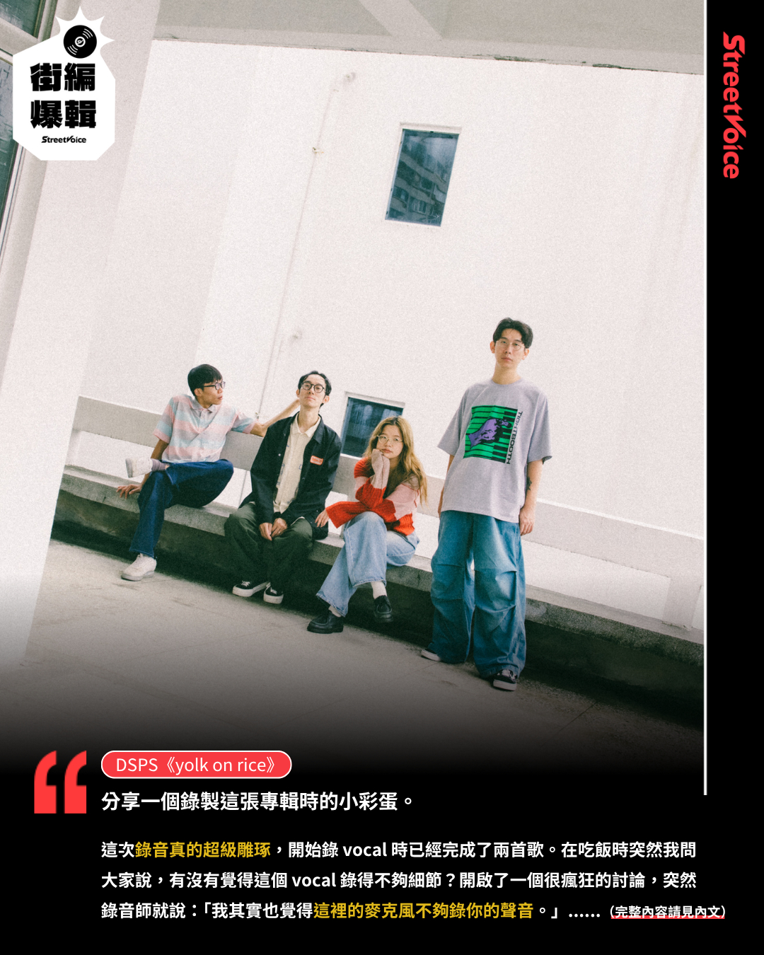 《yolk on rice》是一種很微小的美。我們認為生活最美麗的地方來自很細瑣的日常,也像是 DSPS 音樂的意象,簡單的日常畫面,溫暖、飽足、安全、柔軟。