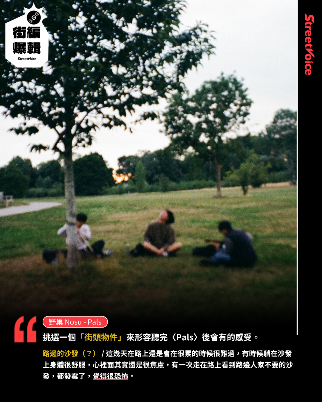 Q:挑選一個「街頭物件」來形容聽完〈Pals〉後會有的感覺。