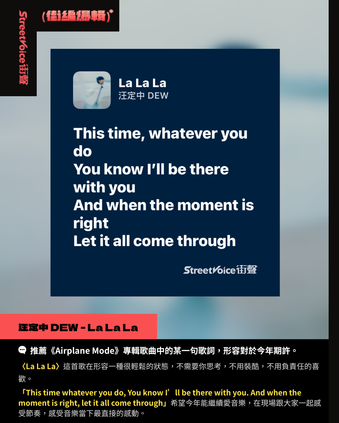 Q:推薦《Airplane Mode》專輯歌曲中的某一句歌詞,形容對於今年期許。