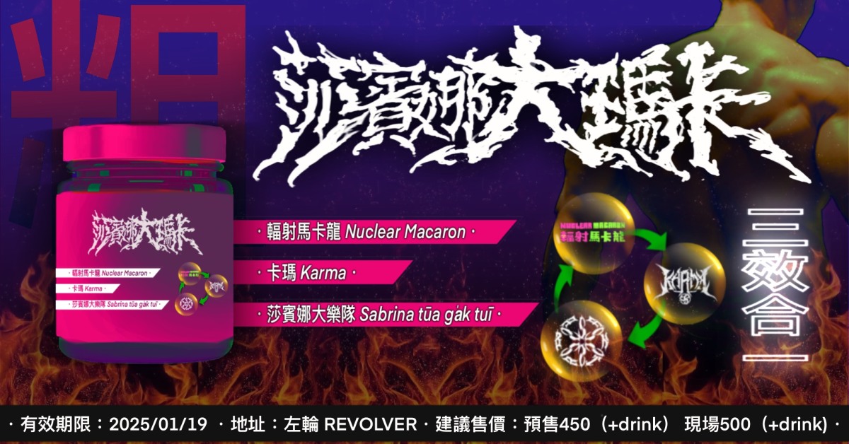 成份:輻射馬卡龍 Nuclear Macaron/卡瑪 Karma/莎賓娜大樂隊 Sabrina tūa ga̍k tuī