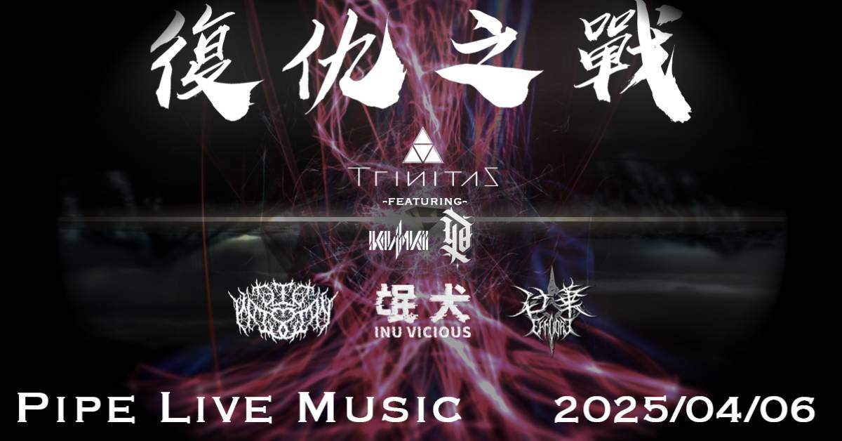 4/6 Trinitas 崔里特斯 將與 Efflore白華 、 DiePression 以及台灣知名DJ電音創作者 KIVΛ 和嘻哈歌手 氓犬INU VICIOUS ,展開一場復仇之戰。