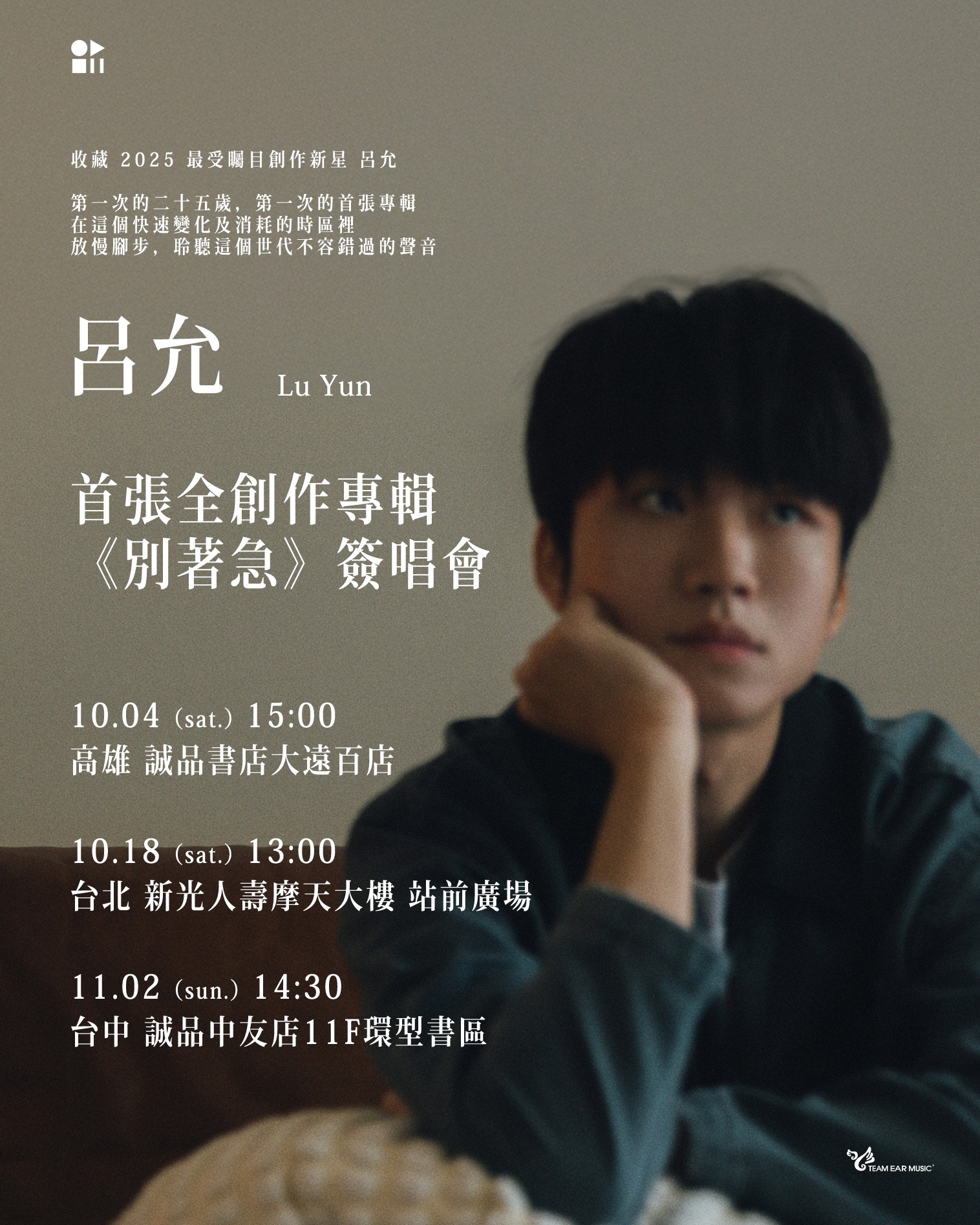 ▍呂允 首張全創作專輯《別著急》簽唱會 & 實體發行日公告