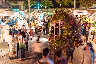 40 組自「小試身手市集甄選」之生活與創意品牌由 300 組報名品牌中脫穎而出,最終有近 60 組品牌參與「微光森林」市集