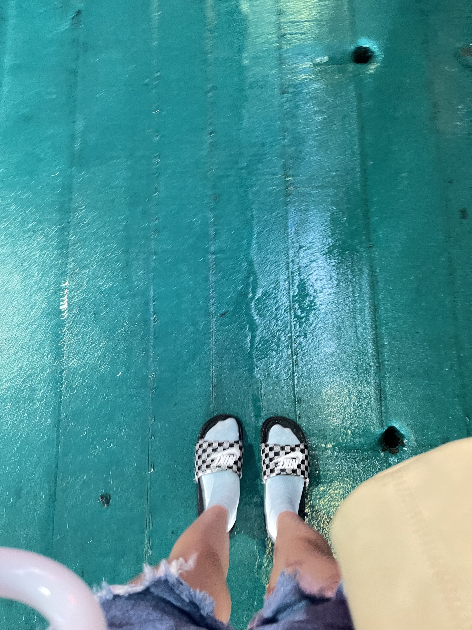 然後襪子就濕掉了……?(不過藍色襪子配黑白格紋拖鞋很好看餒♡