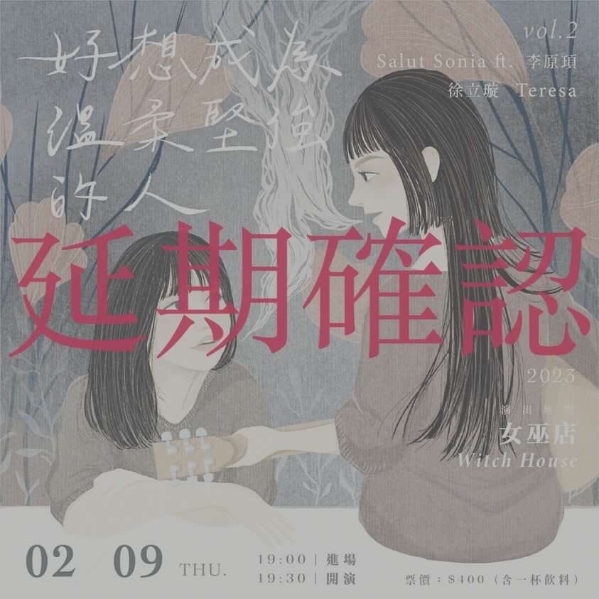 因演出者確診延期了,日期待公佈!明晚女巫店會由流浪歌手Yoyo 代打演出,歡迎大家可以到現場支持喲!