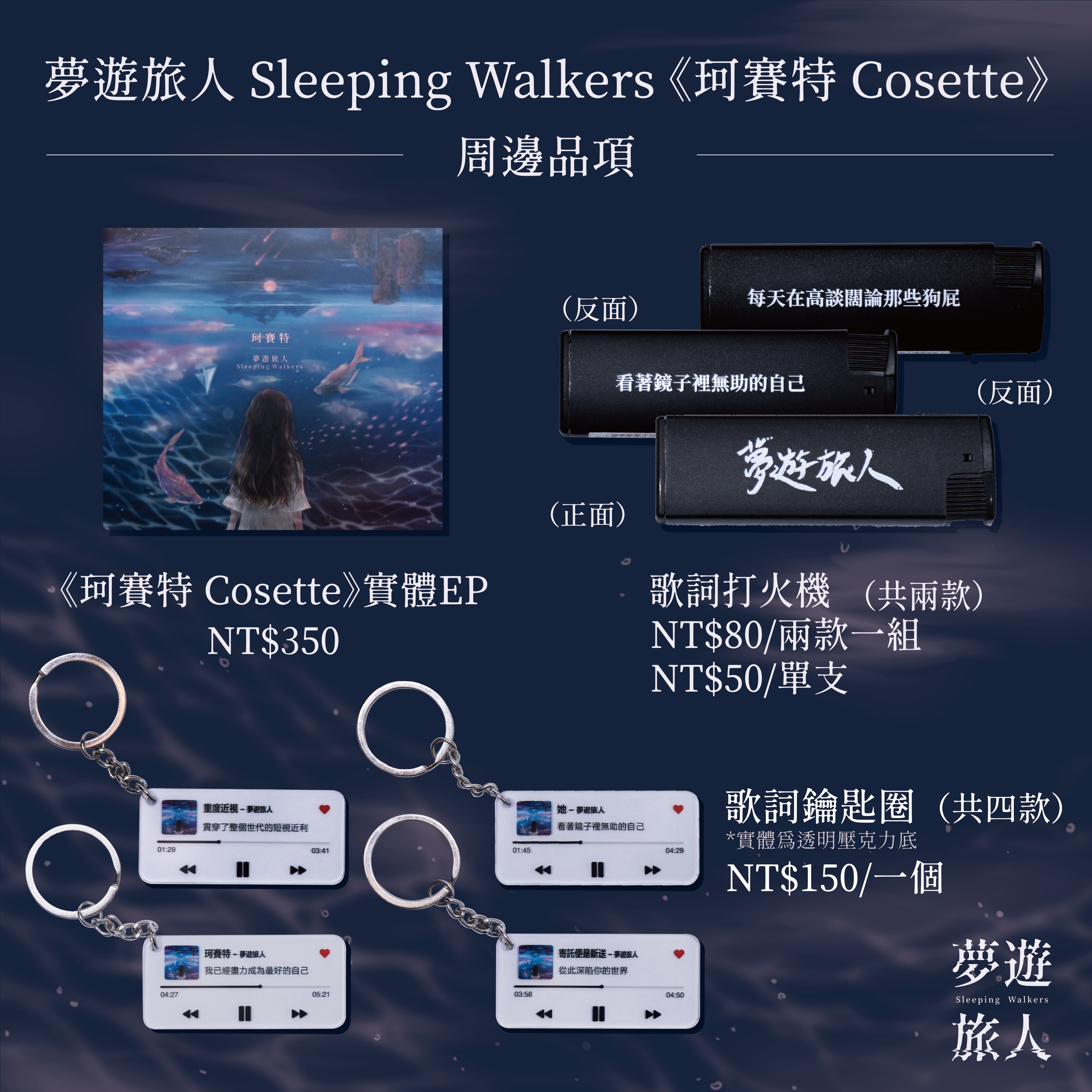 {7/19~8/4號} 期間在夢遊旅人YT的EP四首歌下方按讚並留言就有機會抽中(珂賽特實體CD *1、歌詞播放器鑰匙圈*1、夢遊旅人歌詞打火機*1)套組。