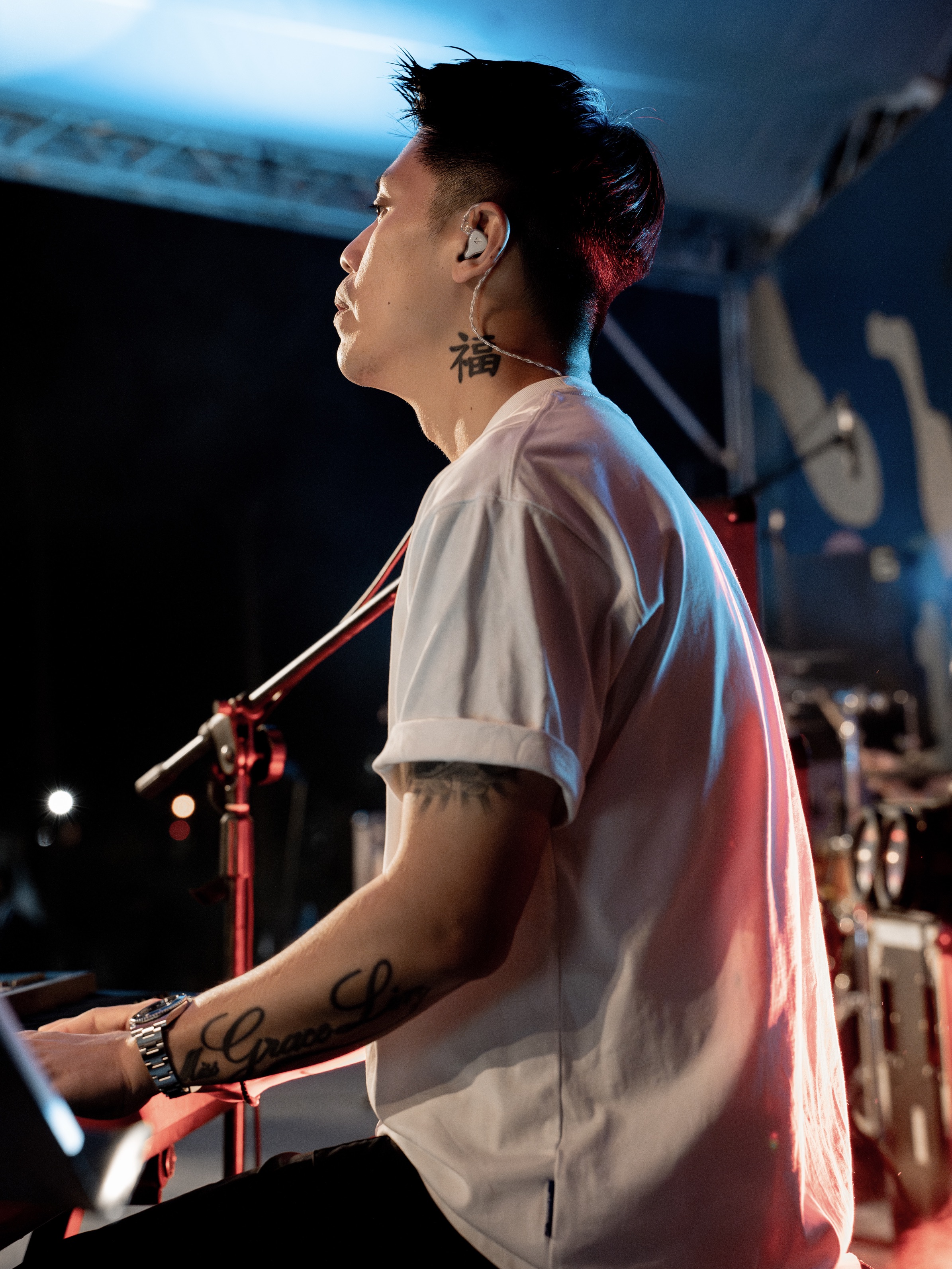除了晨曦工作之外,他白天在音樂製作公司擔任助理,晚上常常在排練室、錄音室或演出現場奔波。從為別人製作音樂,到幫藝人校樂器、run show,再回到晨曦創作和表演,昶煬在不同角色間來回切換,像在不同宇宙間穿梭。但他總是全力以赴,因為他知道,自己不只是在「工作」,而是在守護一個能讓自己發光的地方。