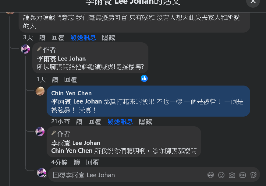 最近好多人主張發生性侵不得反抗而是主動示好並將雙腿張到最開,過程中還要宣稱好棒好爽,想知道大家對此抱持什麼看法